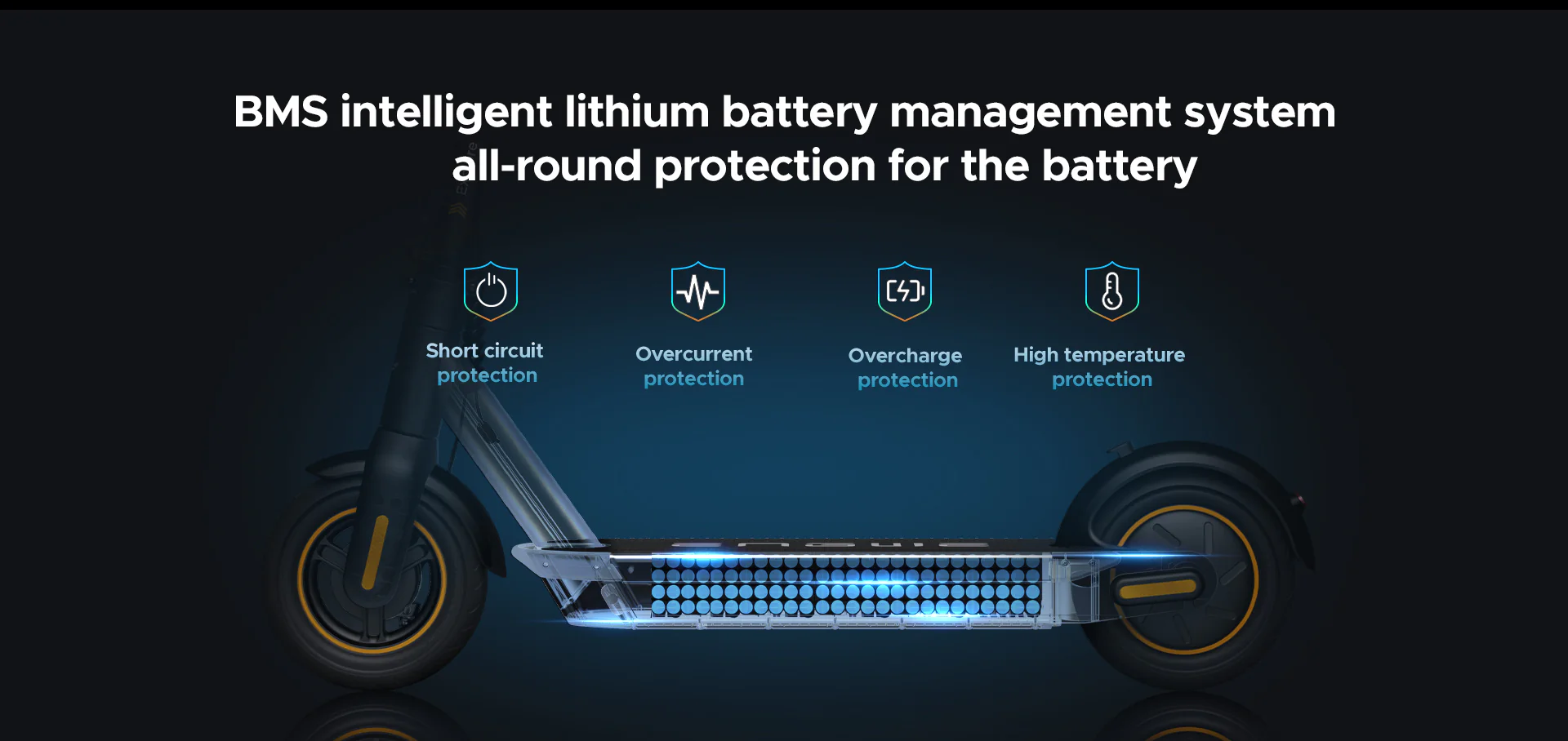 The multifunctional LED display clearly shows battery levels, speed, and mode. Eco, Standard, and Sports modes can be directly accessed by the intuitive LED dashboard.