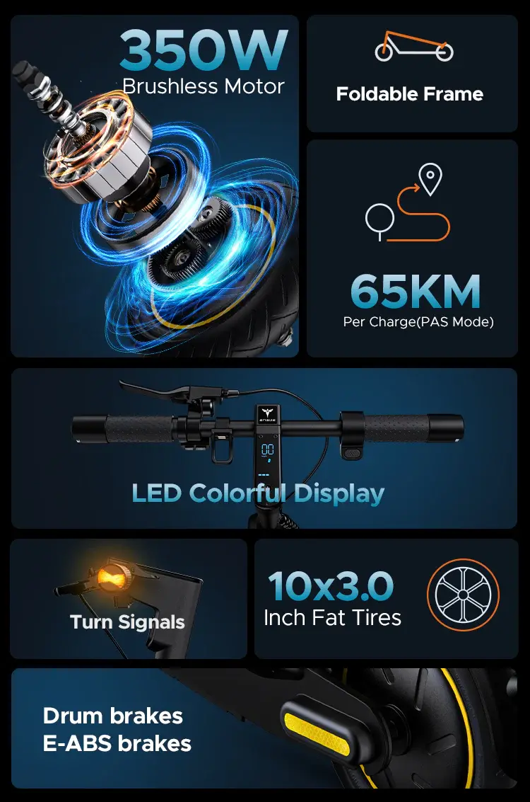 The wide 10x3.0-Inch Fat Tires offer excellent traction and stability, making your city rides comfortable and smooth.