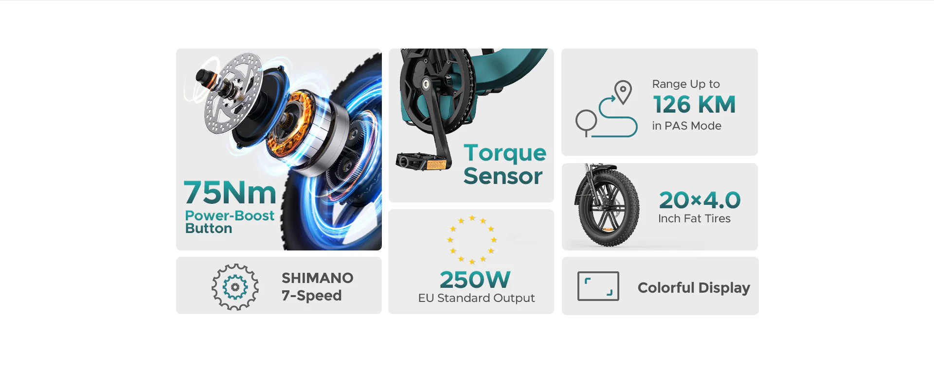 The 20*4.0 inch fat tires offer superior traction and stability, allowing you to ride confidently on sand, snow, and rough trails. These wide tires enhance comfort and safety, reducing the impact of uneven surfaces.
