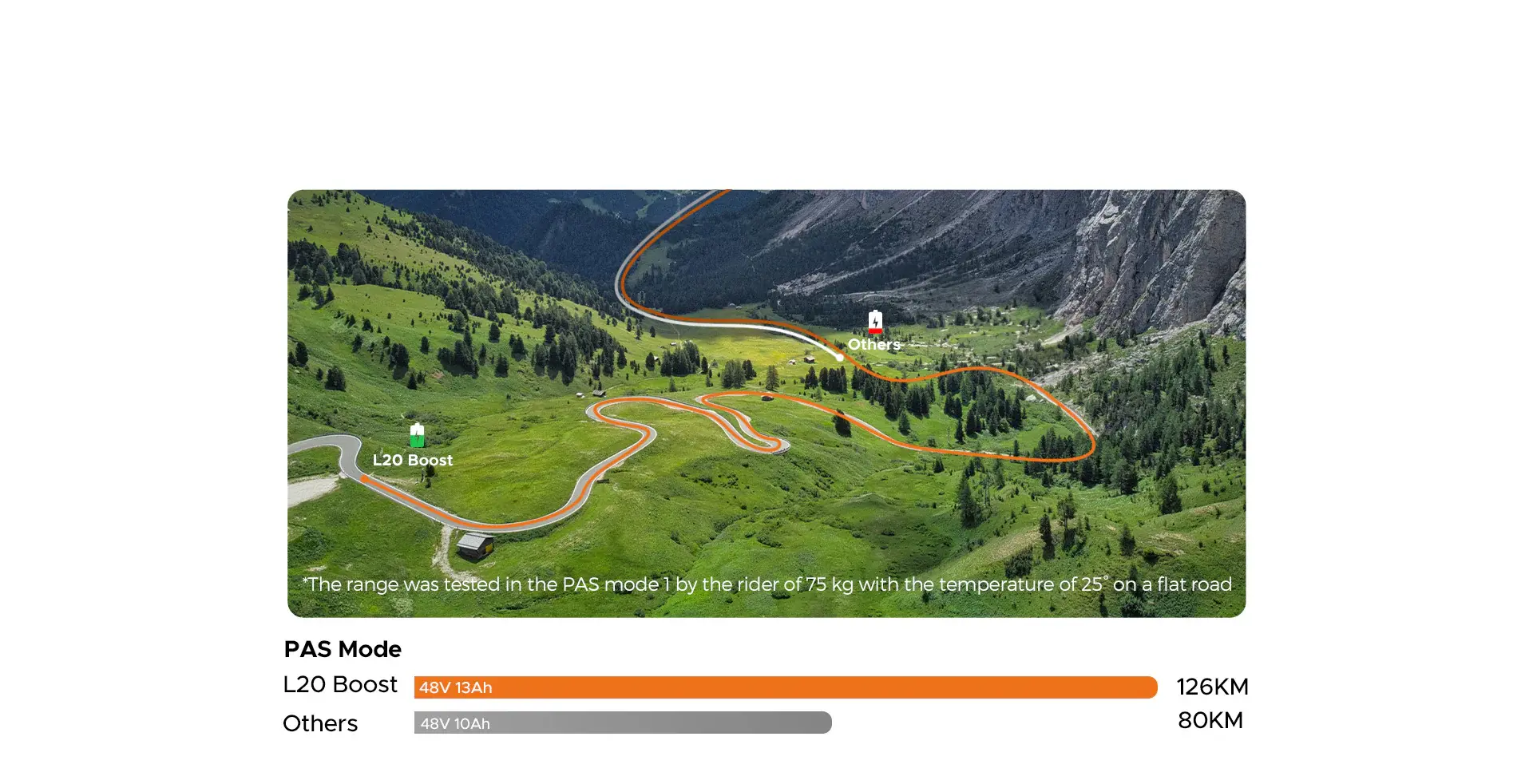 ENGWE's Portable battery ensures consistent power for up to 126 km on a single charge in the mode of PAS 1. With a capacity of 13Ah, enjoy extended rides without the worry of frequent recharging.