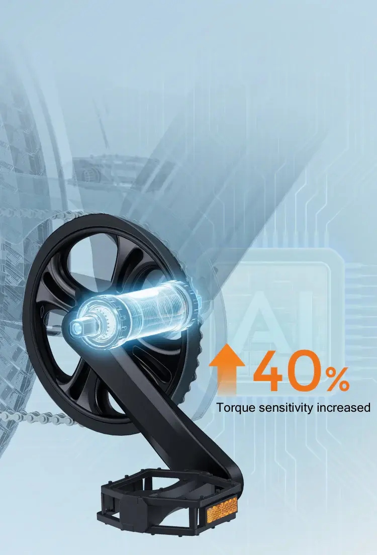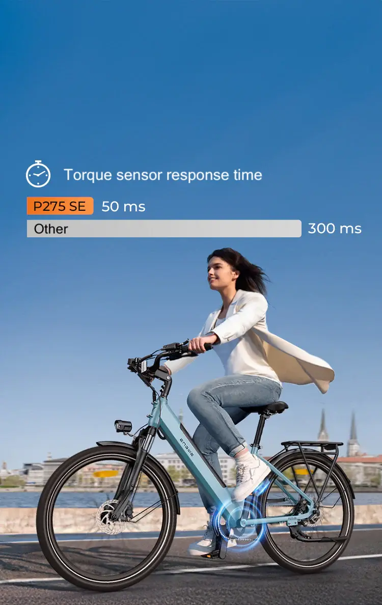 Ultra-responsive torque sensor reacts in just 50 milliseconds — four times faster than the blink of an eye — delivering an incredibly smooth ride.