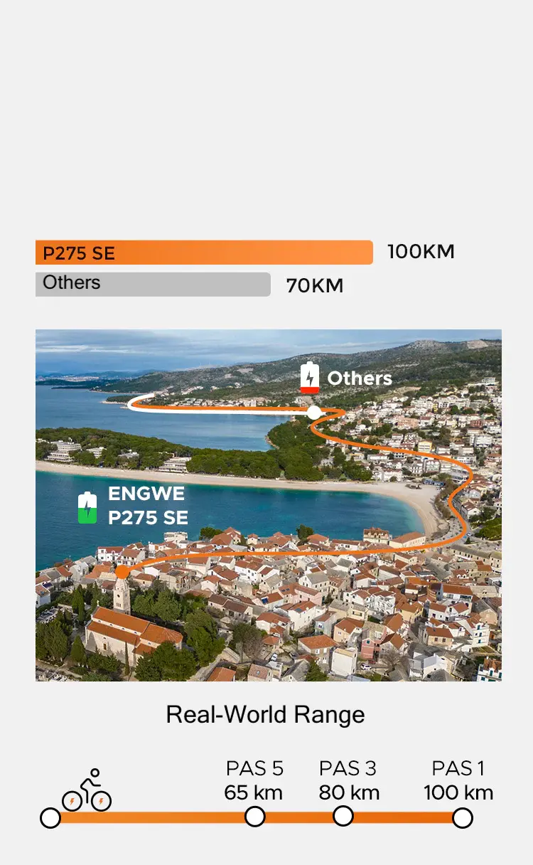 Powered by E-SATS — Engwe’s exclusive AI algorithm and Smart Axle Torque System — it performs up to 50 dynamic calibrations per second, ensuring pedal response time deviation stays within 1%.